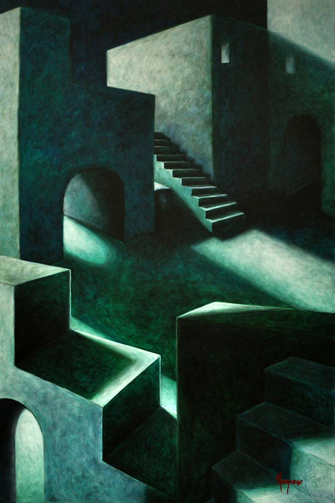 “... works of metaphysical appearance, whose secrets, figures and architectures, with a Dechirichian flavor, with their mysteries not only spiritual, are not easy to guess.