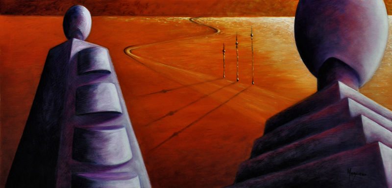 Paesaggio metafisico, 2008, olio su tela, cm 150x300